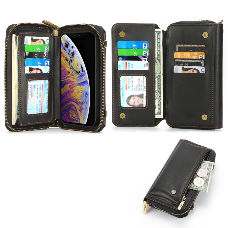Funda para Teléfono iPhone Xs Crossbody Cuero con Billetera y Cremallera (Negro)