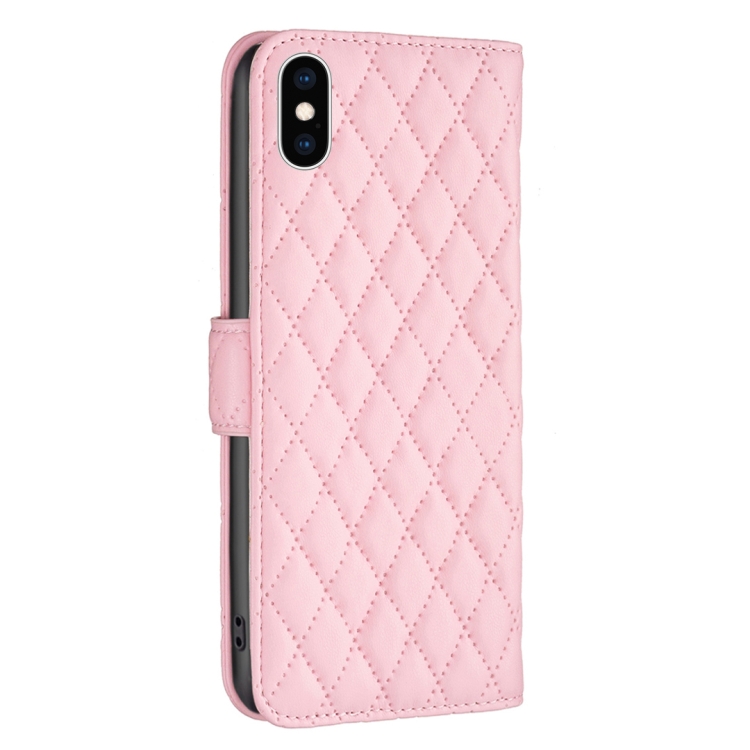 Funda para iPhone Xs Diamond Lattice Wallet de Cuero con Tapa (Rosa)