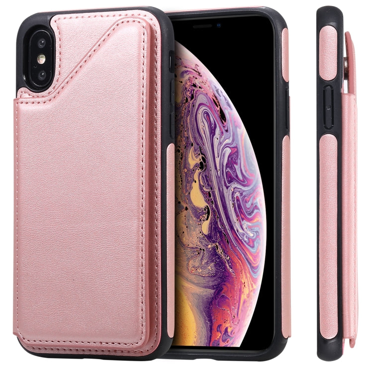 Funda Protectora para iPhone Xs con Textura de Pantorrilla, Soporte, Ranuras para Tarjetas y Marco (Oro Rosa)