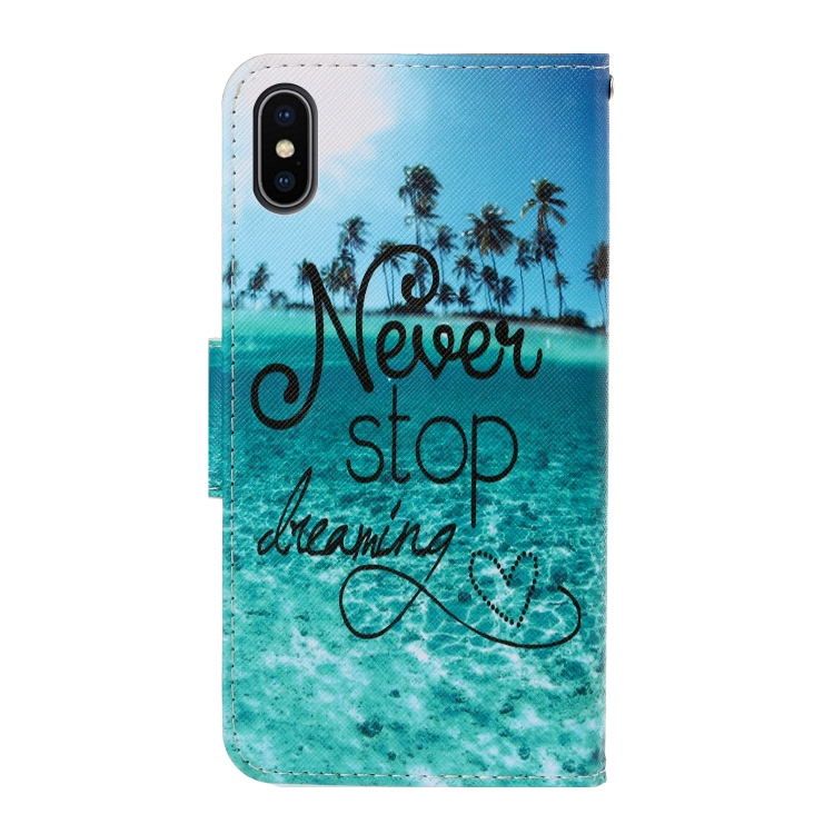 Funda para iPhone Xs Max 3D Dibujo Horizontal Flip PU Cuero con Soporte Tragamonedas Billetera (Blue Coconut Grove)