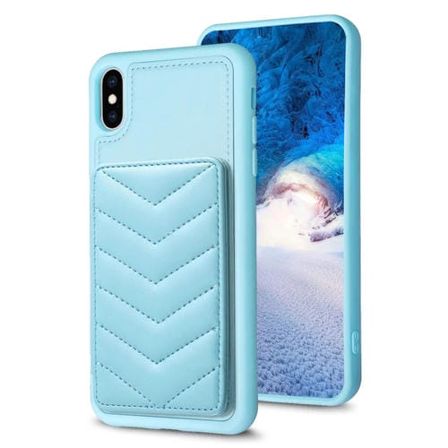 Funda para iPhone Xs Max Bf26 Wave Pattern Card Bag Holder Phone Case (Azul)