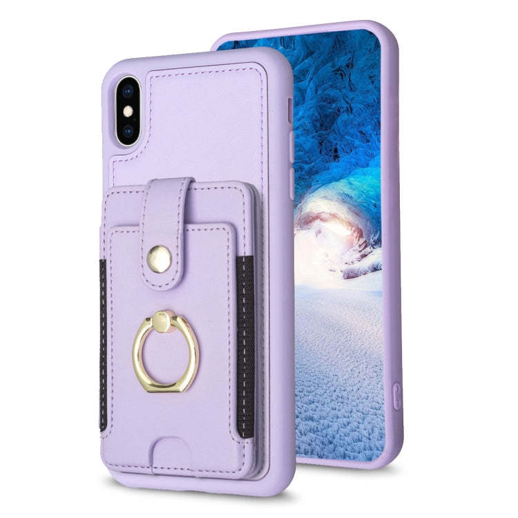 Funda para Teléfono BF27 para iPhone Xs Max con Soporte Tarjeta Anillo Metal (Púrpura)