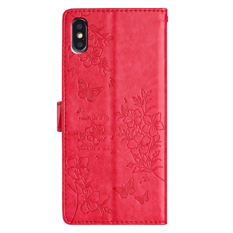 Funda de Cuero para iPhone Xs Max Butterfly Love Flower En Relieve (Rojo)