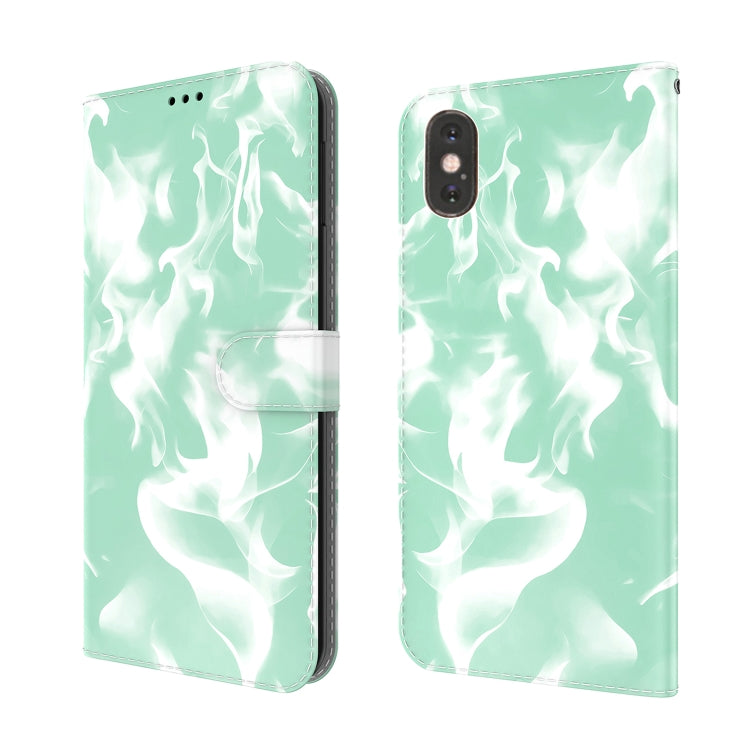Funda de Cuero para iPhone Xs Max Cloud Fog Pattern con Tapa Horizontal, Soporte, Ranura para Tarjeta y Billetera (Verde Menta)