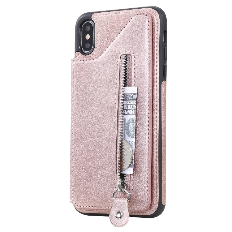 Funda Protectora para iPhone Xs Max Doble Hebilla Cremallera a Prueba de Golpes (Oro Rosa)