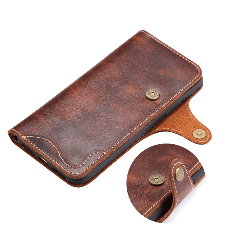 Funda para iPhone Xs Max Denior Oil Wax Cowhide con Botón Magnético, Tapa Horizontal, Ranuras para Tarjetas y Billetera (Marrón)
