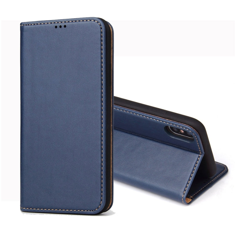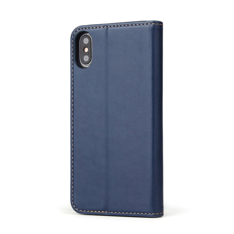 Funda de Cuero Dermis Texture para iPhone Xs Max con Tapa Horizontal, Soporte y Ranuras para Tarjetas (Azul)