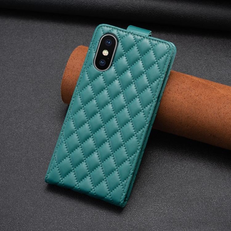 Funda de Cuero para iPhone Xs Max Diamond Lattice con Tapa Vertical (Verde)
