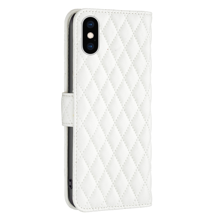 Funda para iPhone Xs Max Diamond Lattice Wallet de Cuero con Tapa para Teléfono (Blanco)