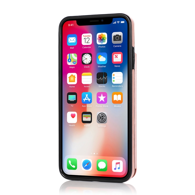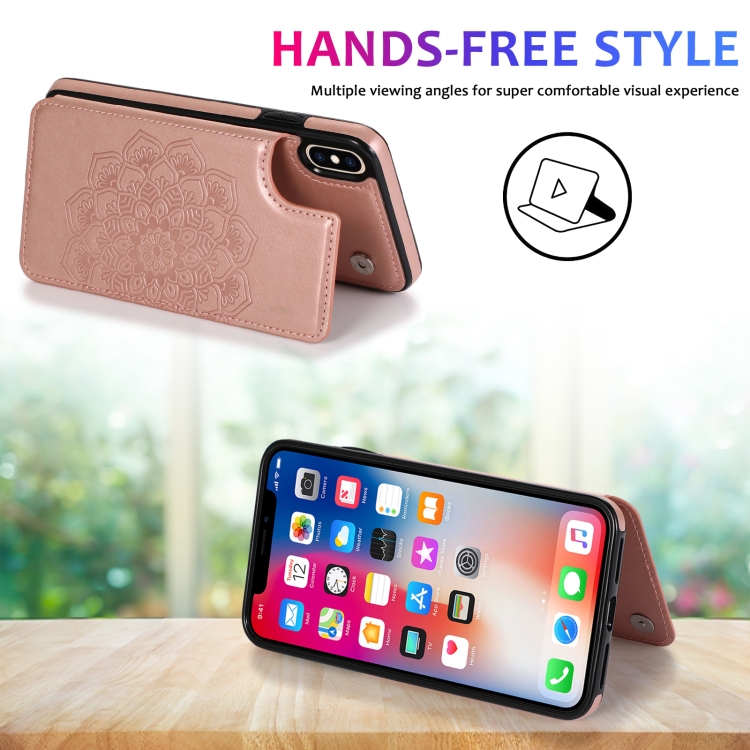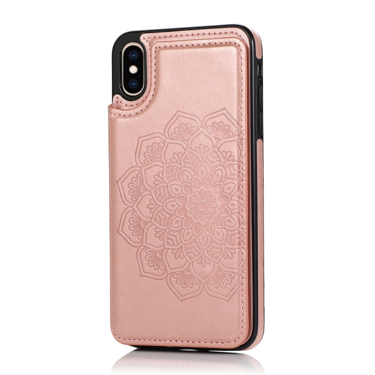 Estuche protector iPhone Xs Max PU y TPU doble hebilla mandala patrón con ranuras tarjetas soporte marco fotos (Oro Rosa)