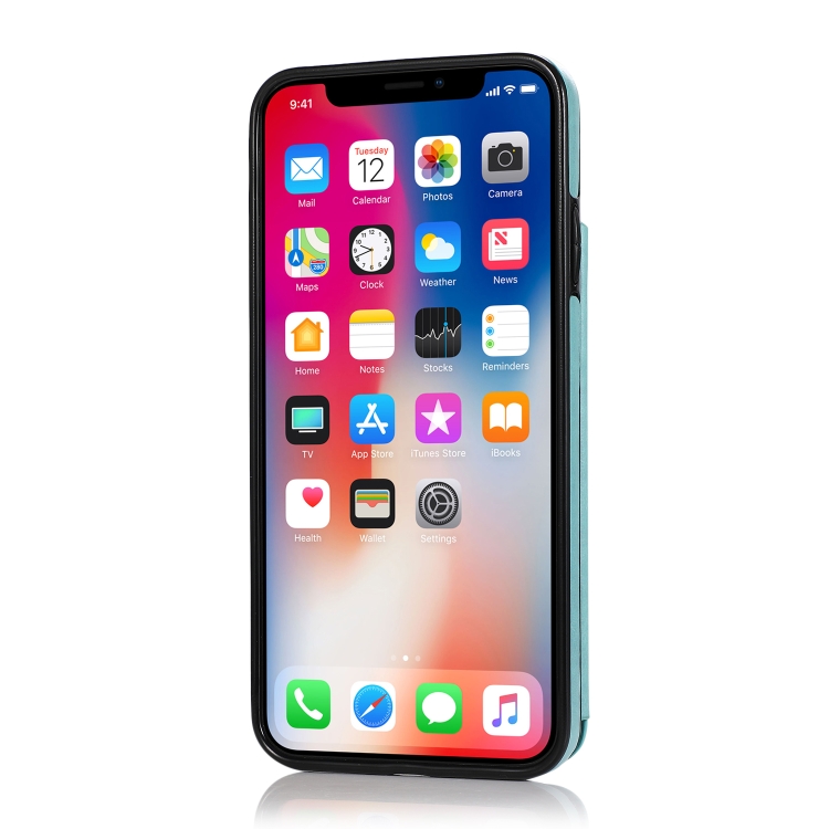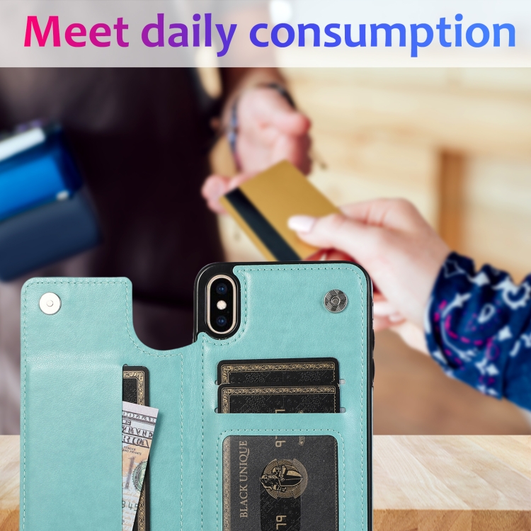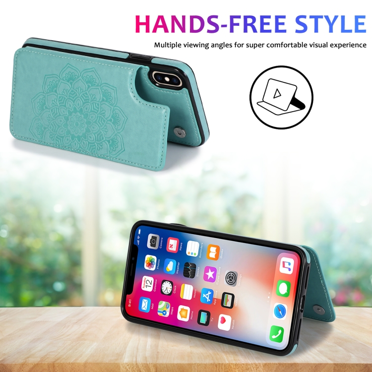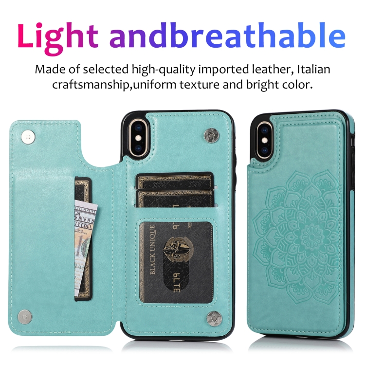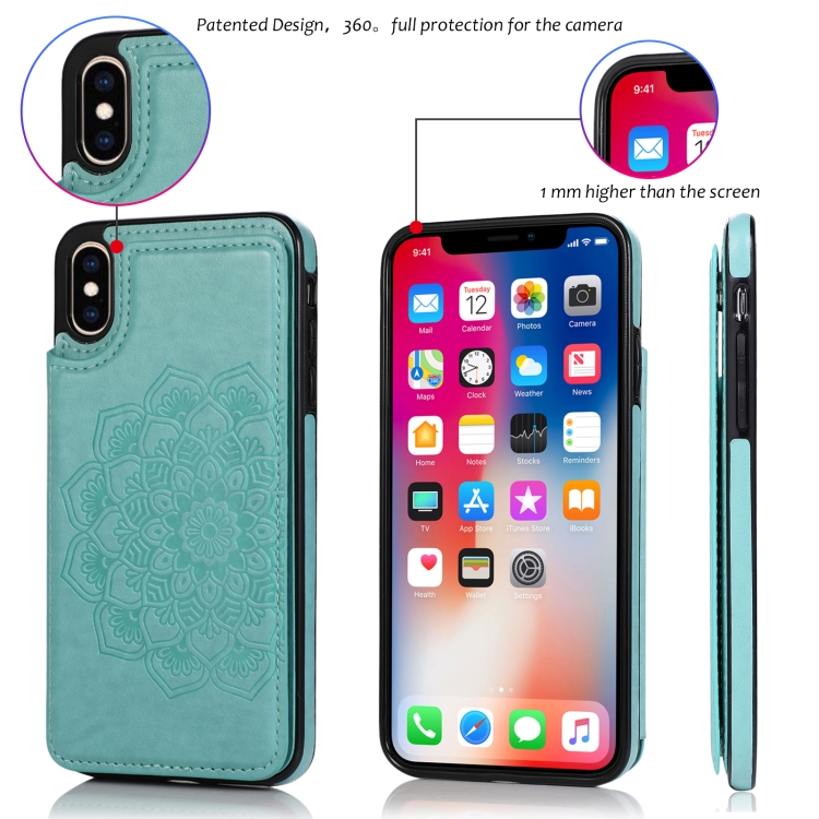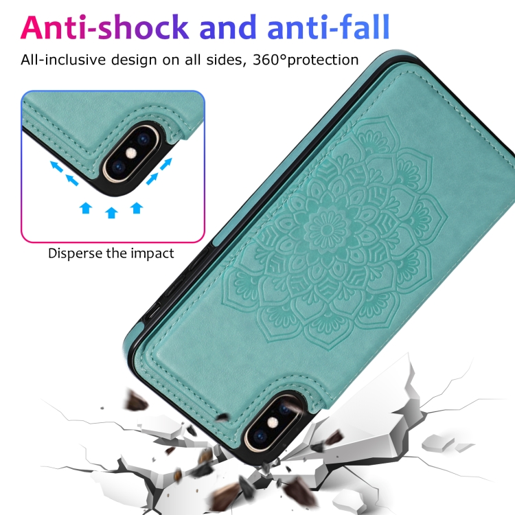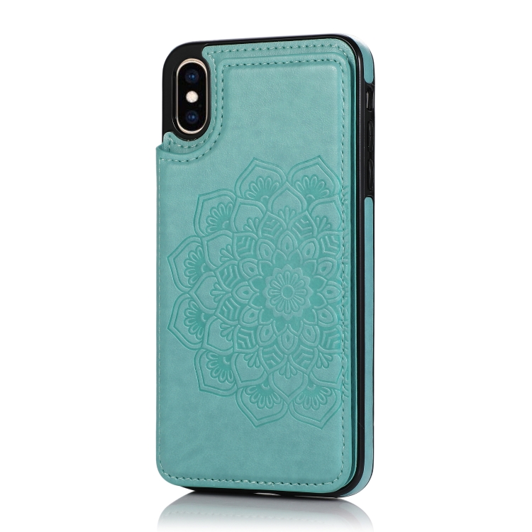 Funda Protectora iPhone Xs Max Doble Hebilla Mandala PU + TPU con Ranuras Tarjetas Soporte Marco Fotos (Verde)