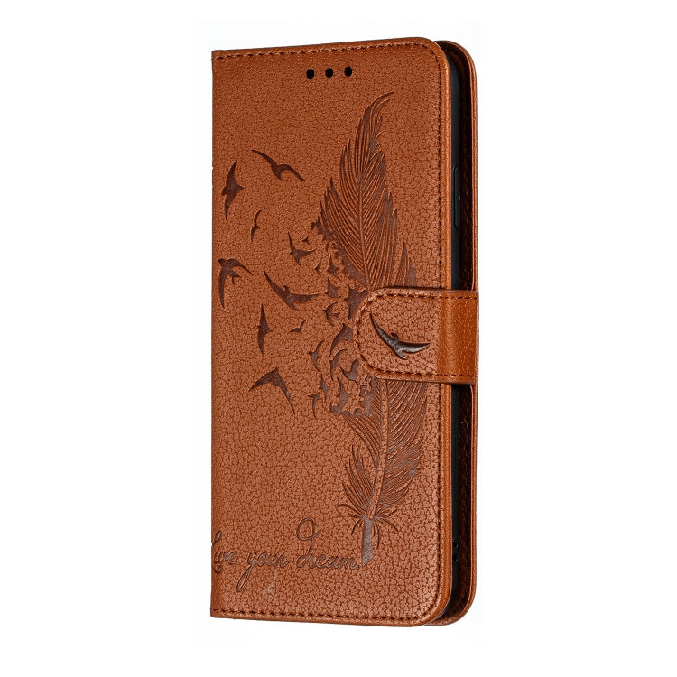 Funda de cuero para iPhone Xs Max Feather Pattern con tapa horizontal, billetera, soporte y ranuras para tarjetas (Marrón)