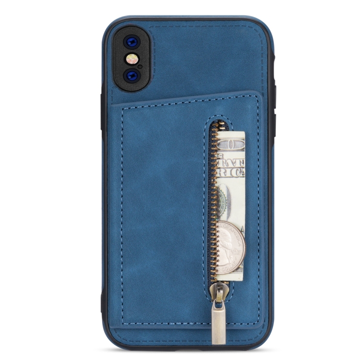 Funda para iPhone Xs Max con Cremallera y Tarjetero (Azul)