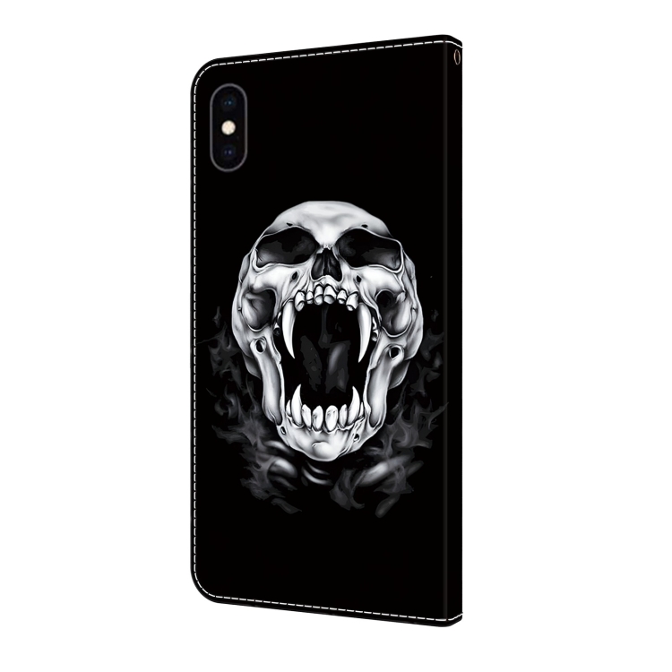 Funda de Cuero para iPhone Xs Max Pintada con Cristales Calavera