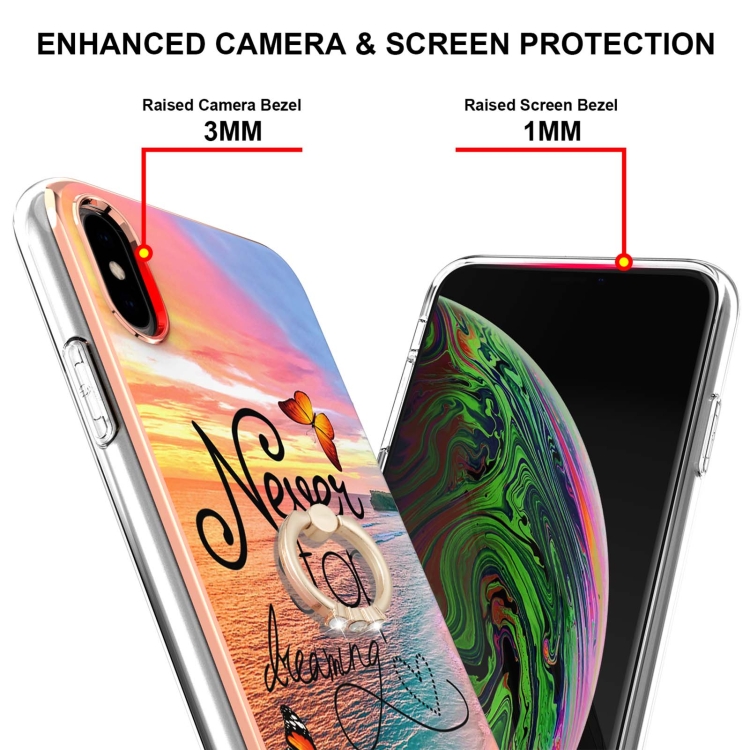 Estuche TPU para iPhone Xs Max Patrón Galvanoplastia Imd a Prueba de Golpes con Soporte para Anillo (Dream Chasing Butterfly)