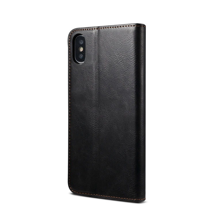 Funda de Cuero iPhone Xs Max Simple Wax Crazy Horse con Tapa Horizontal y Ranuras para Tarjetas (Negro)