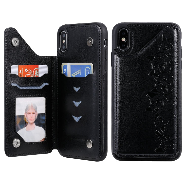 Estuche Protector para iPhone Xs Max Six Cats con Patrón de Relieve Soporte Ranuras para Tarjetas y Marco de Fotos (Negro)