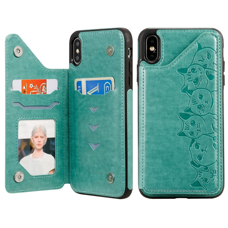 Estuche protector para iPhone Xs Max Six Cats con patrón de relieve soporte ranuras tarjetas marco fotos (Verde)