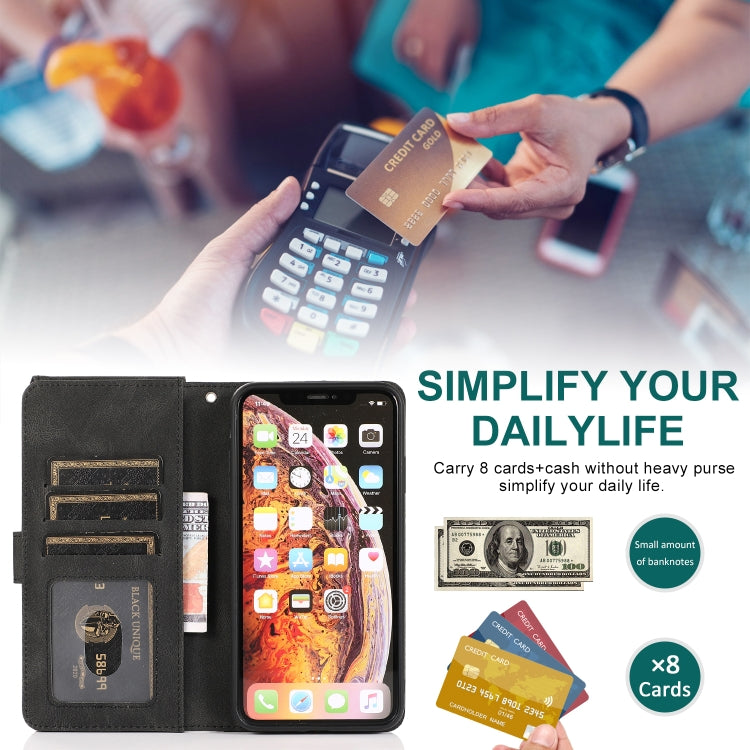 Estuche para iPhone Xs Max Skin-Feel Crazy Horse Texture Zipper Wallet Bag con Tapa Horizontal, Soporte, Ranuras y Cordón (Negro)