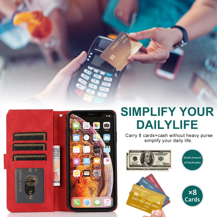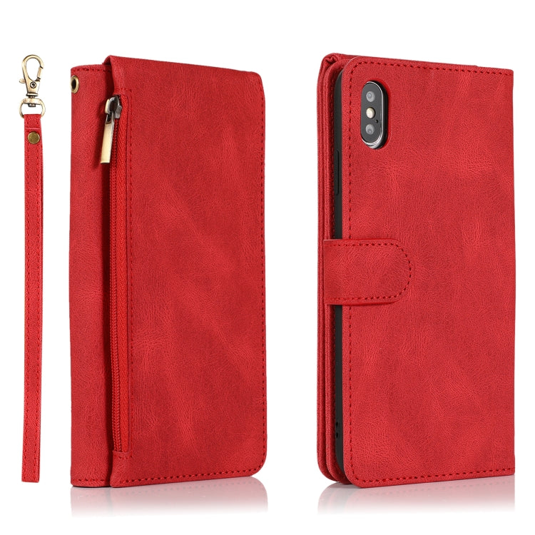 Estuche para iPhone Xs Max Skin-Feel Crazy Horse Textura Zipper Wallet Bag Cuero con Tapa Horizontal Soporte Ranuras Tarjetas Billetera Cordón (Rojo)