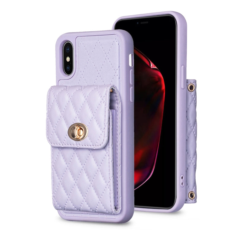 Funda de Cuero para iPhone Xs Max Vertical con Hebilla Metal Rombico (Púrpura)