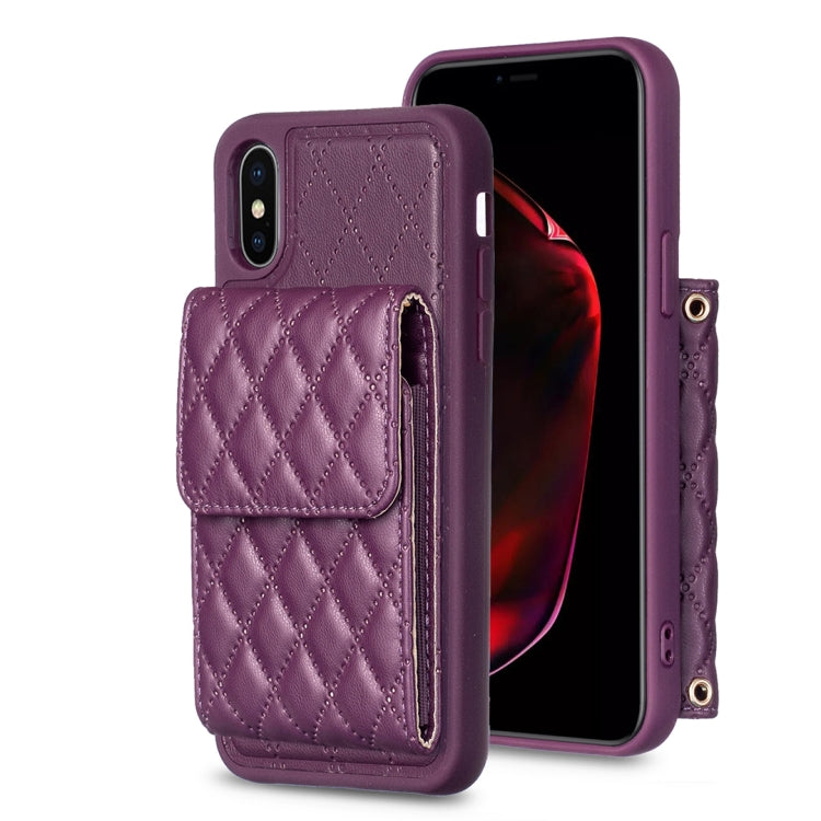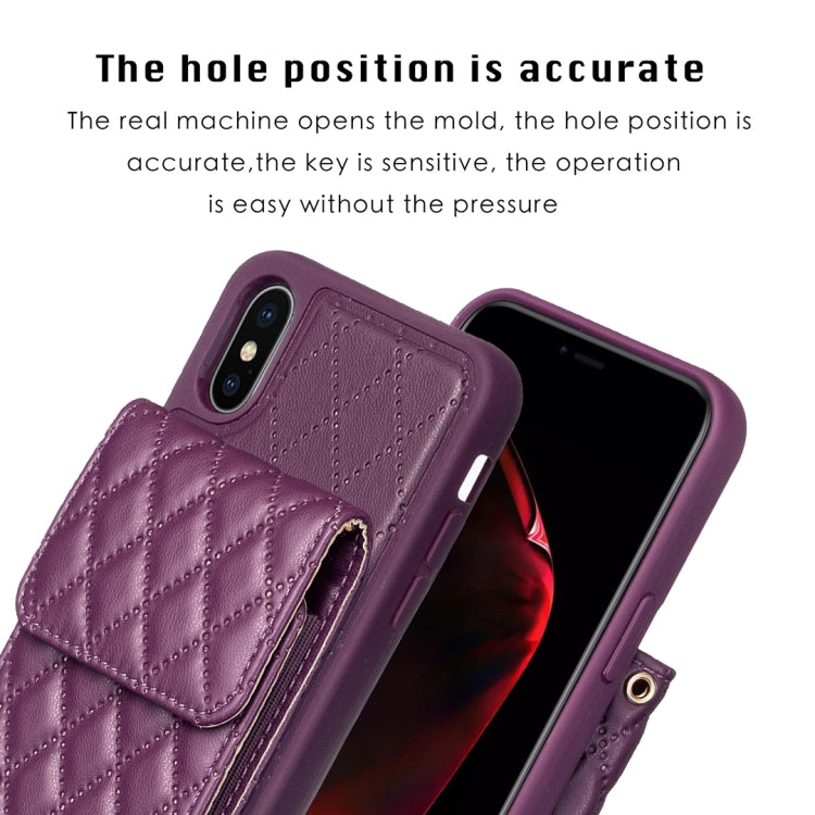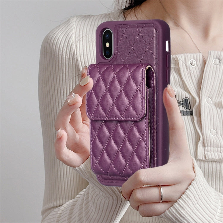 Funda para iPhone Xs Max Vertical Wallet Rhombic de Cuero para Teléfono (Morado Oscuro)
