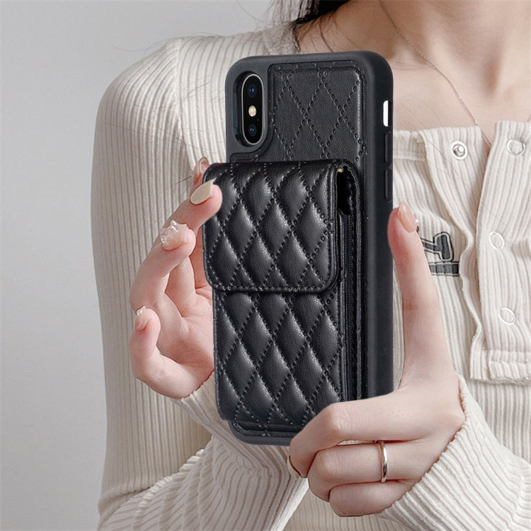 Funda para iPhone Xs Max Vertical Wallet Rhombic Leather Phone Case (Negro)
