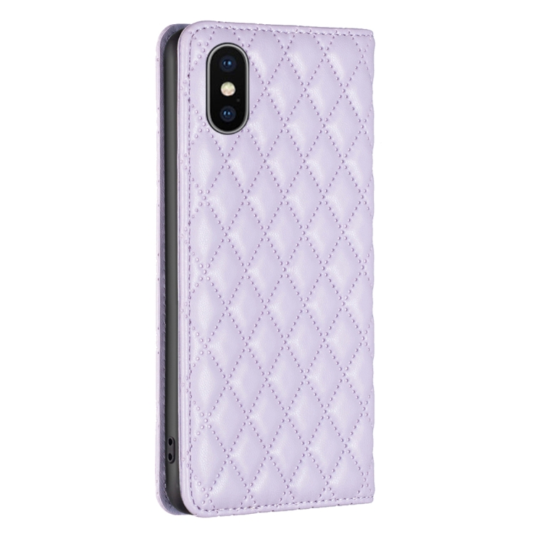 Funda de teléfono para iPhone Xs / X con tapa de cuero magnético Diamond Lattice (Púrpura)
