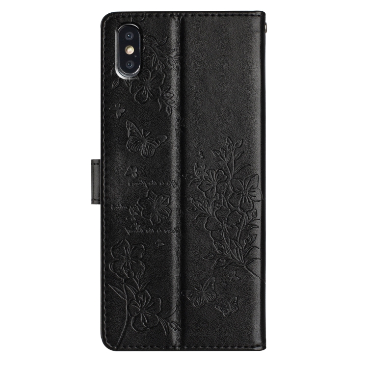 Funda para Teléfono iPhone Xs X Cuero Relieve Flor Amor Mariposa (Negro)