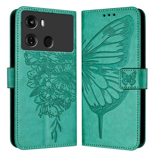 Funda de Cuero para Itel P40 con Mariposa en Relieve (Verde)