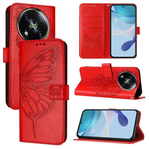 Funda para Itel Rs4 S666Ln de Cuero con Mariposa en Relieve (Rojo)