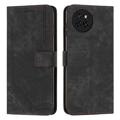 Funda de Cuero para Itel S23 con Patrón de Rayas y Cordón (Negro)