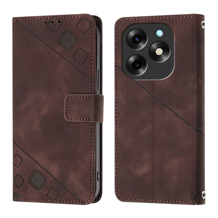 Funda de Cuero Skin Feel para Itel S23 en Relieve (Marrón)