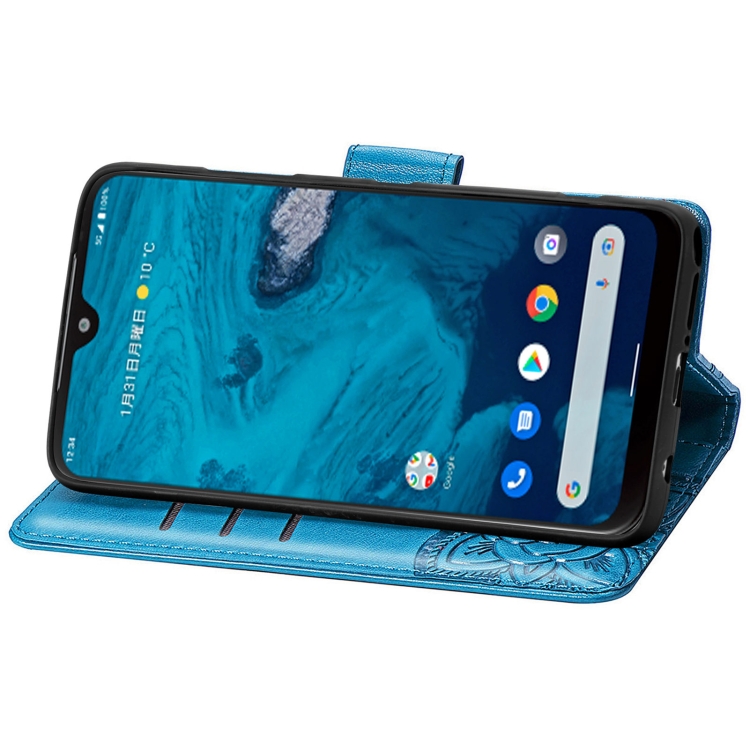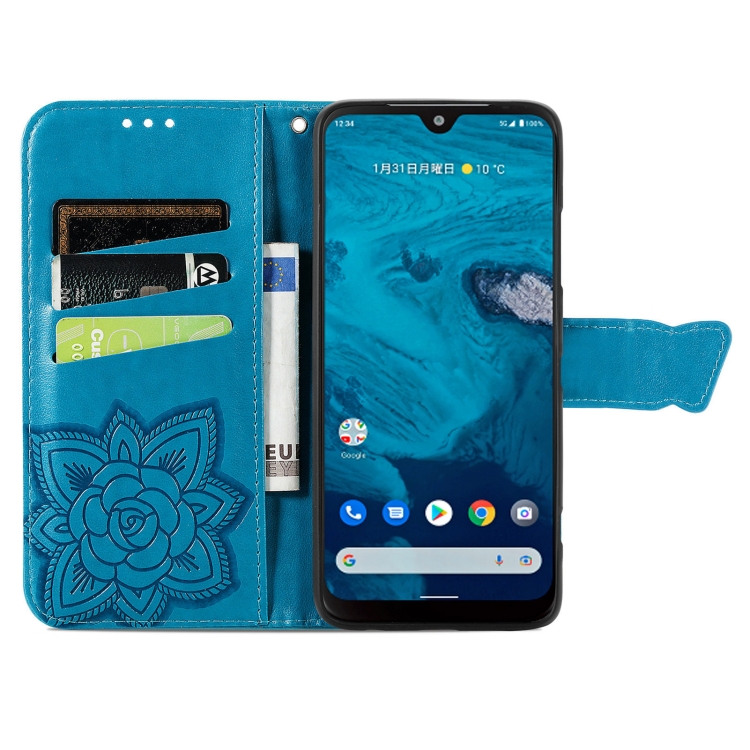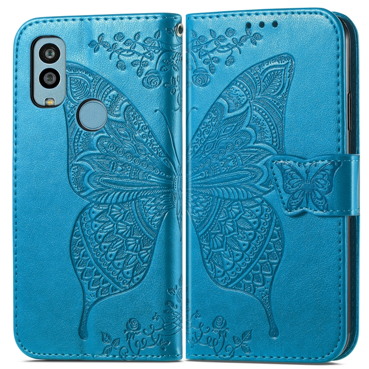 Funda para Kyocera Android One S10 Butterfly Love Flower en Cuero En Relieve (Azul)
