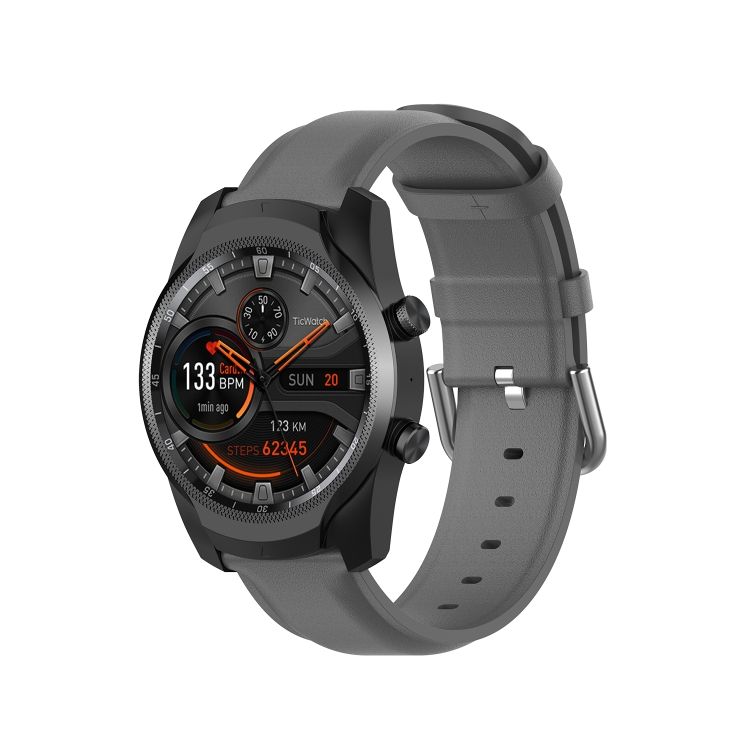 Banda de Reloj de Cuero Ticwatch Pro 2020 22mm con Hebilla Redonda (Gris)