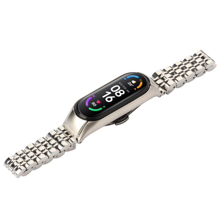Para la banda Xiaomi Mi Band 6/5 de siete cuentas de acero inoxidable (plata)