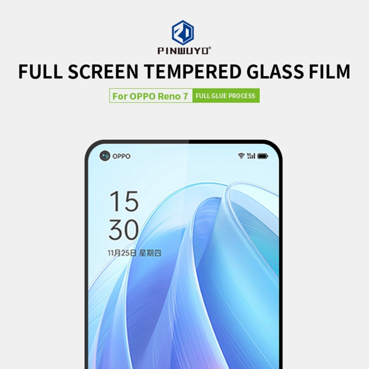 Para la Pantalla del Oppo Reno7 5G Pinwuyo 9H 2.5D Completo de Cristal Templado de la Película (Negro)