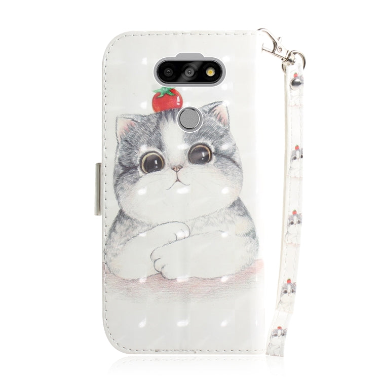 Funda Cuero Abatible Horizontal LG Aristo 5 con Dibujo 3D, Soporte, Ranuras, Billetera y Cordón (Cute Cat)