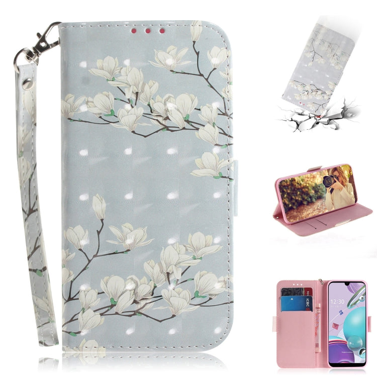 Funda de Cuero para LG Aristo 5 con Tapa Horizontal Dibujo 3D Soporte Ranuras Tarjetas Billetera Cordón (Magnolia)