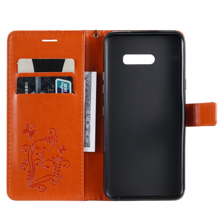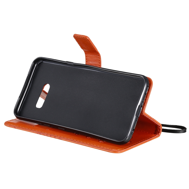 Funda Cuero PU para LG G8X con Tapa Horizontal, Soporte, Ranuras, Billetera y Cordón (Naranja)