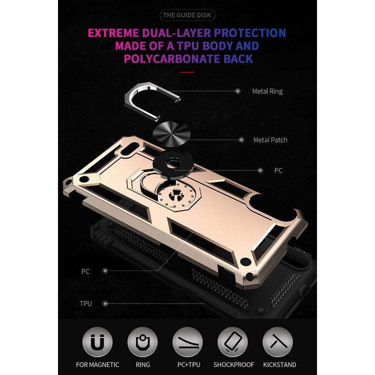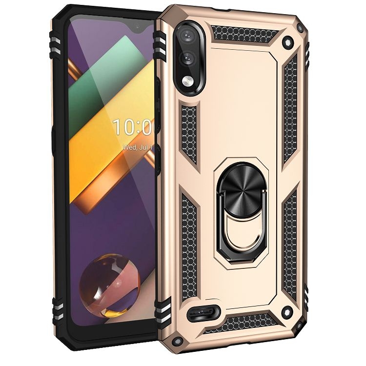 Funda Protectora LG K22 TPU + PC con Soporte Giratorio 360 Grados (Oro)