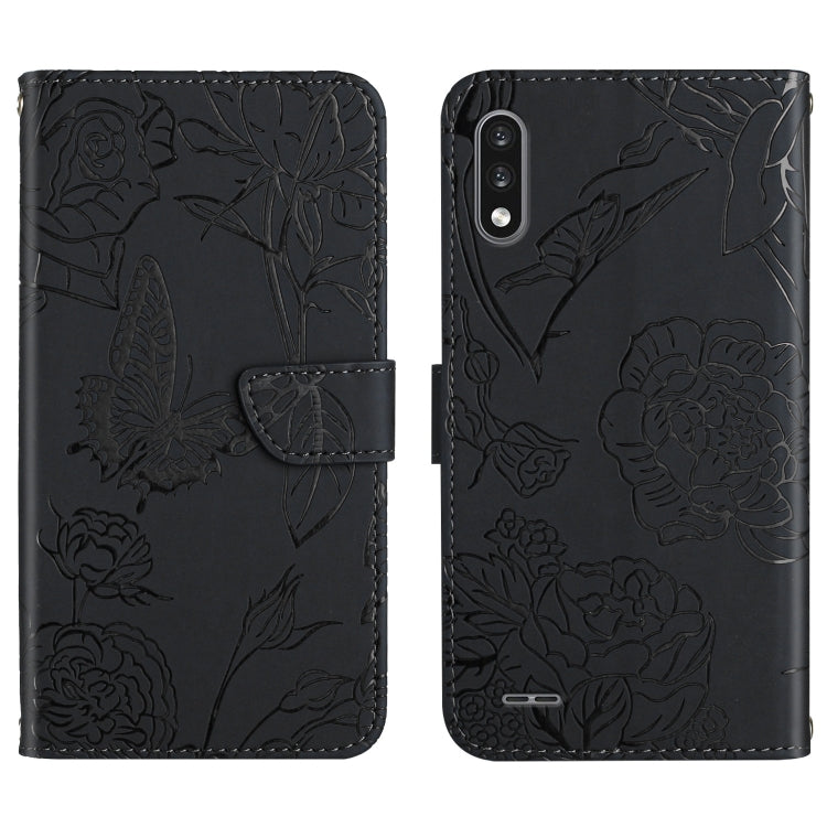 Funda de Cuero para LG K22 con Relieve de Peonía y Mariposa (Negro)