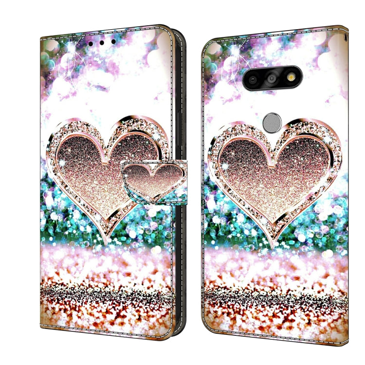 Funda Protectora de Cuero para LG K31 Crystal 3D a Prueba de Golpes (Corazón de Diamante Rosa)