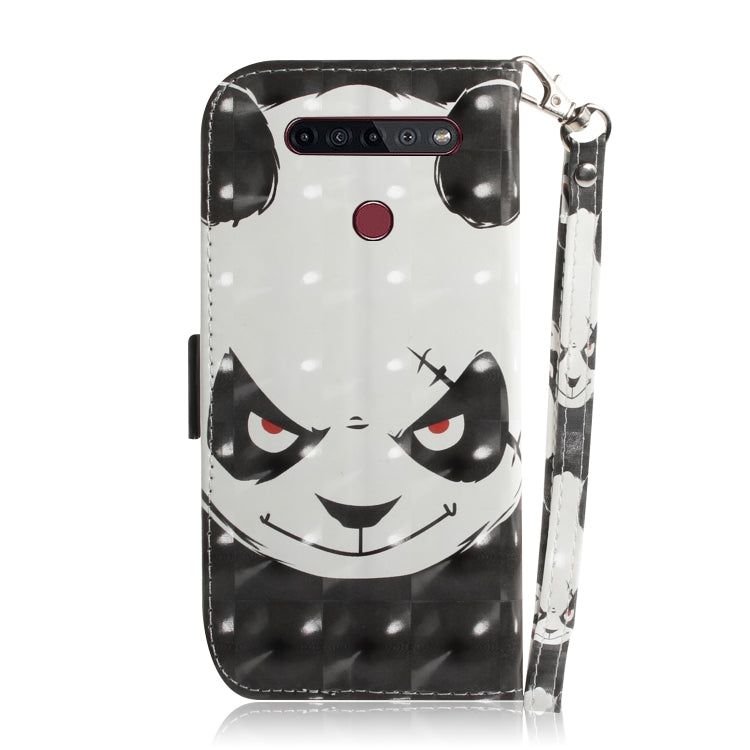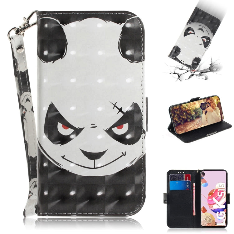 Funda de Cuero Abatible para LG K41S / K51S con Dibujo 3D, Soporte, Ranuras y Cordón (Oso Enojado)