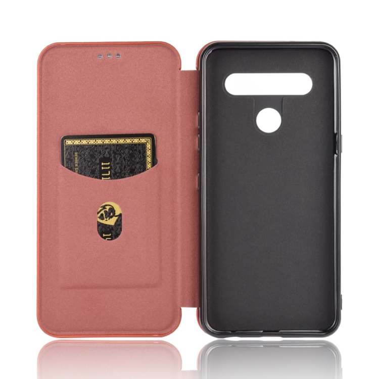 Funda Flip Magnética para LG K41S / K51S con Textura Fibra de Carbono y Ranura para Tarjeta
