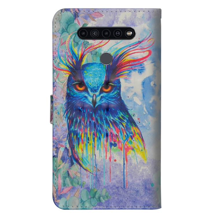 Funda para LG K41S TPU + Cuero PU con Soporte, Ranuras para Tarjetas, Billetera y Cordón (Búho de Acuarela)