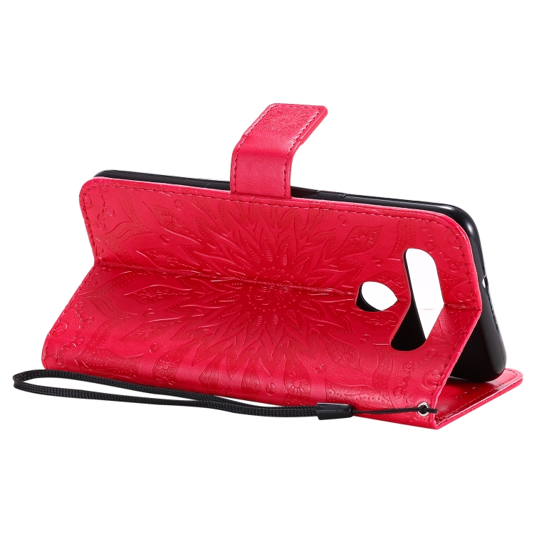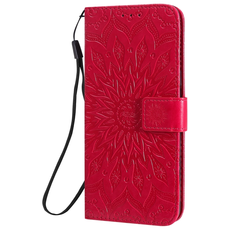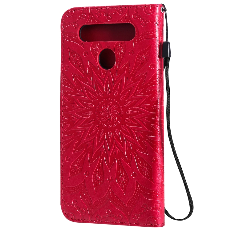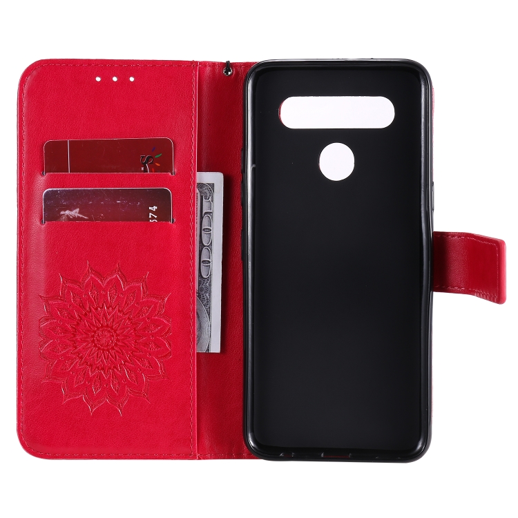 Funda Cuero PU LG K41S y K51S Patrón Girasol con Tapa Horizontal, Soporte, Ranuras y Cordón (Rojo)