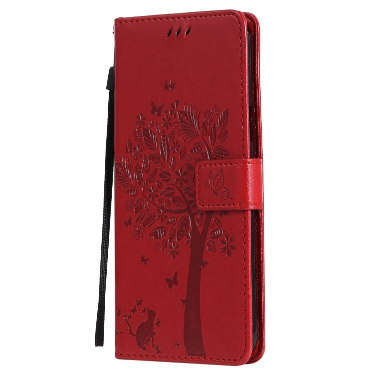 Funda de Cuero PU para LG K42 con Soporte, Ranuras para Tarjetas y Cordón (Rojo)