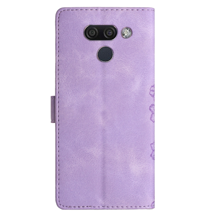 Funda para LG K50 Cherry Blossom Butterfly Skin Feel de PU en Relieve (Púrpura)