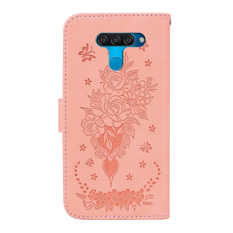 Funda de Cuero Butterfly Rose para LG K50 y Q60 (Rosa)